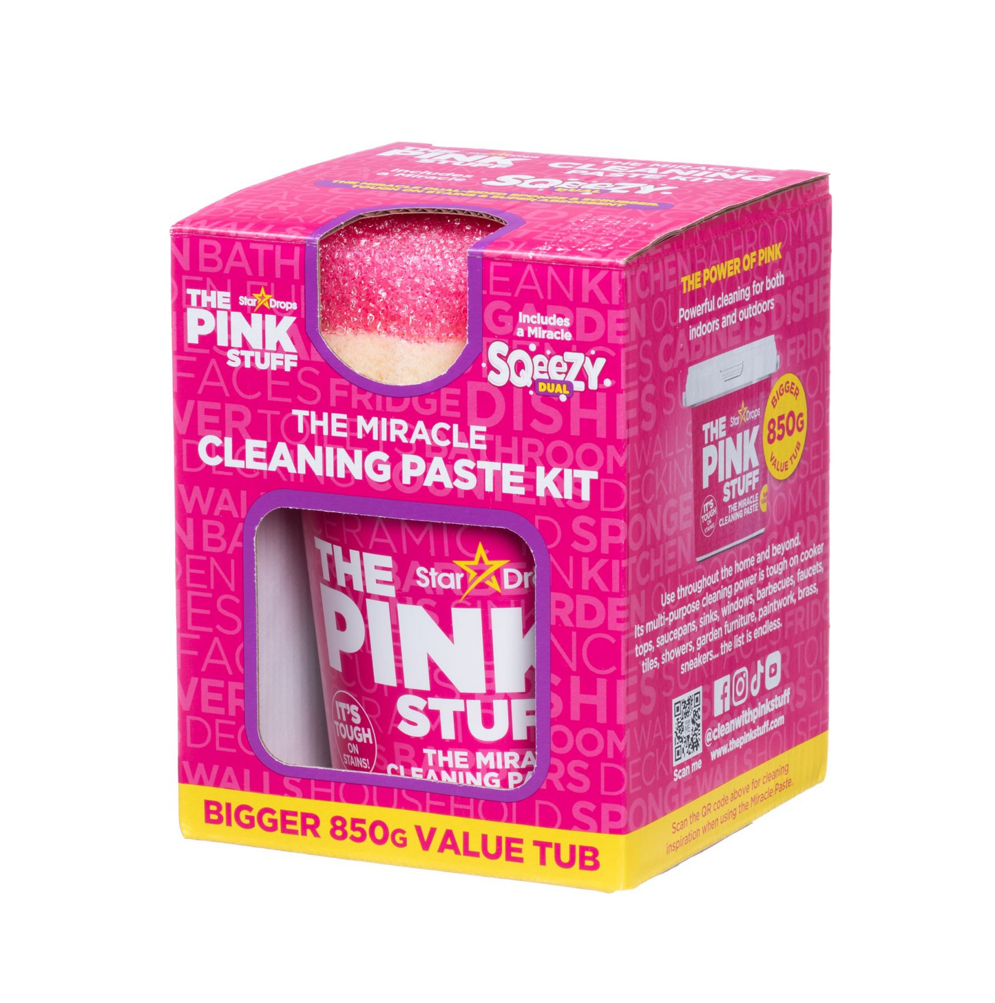 Mit The Pink Stuff Miracle Cleaning Kit reinigst du mühelos hartnäckigen Schmutz im Haus und Garten. Das Kit enthält 850 g Reinigungspaste auf Basis von 99 % natürlichen Inhaltsstoffen und einen nachhaltigen doppelseitigen Schwamm. Geeignet für u.a. Kochplatten, Fliesen, Glas und Gartenmöbel. Sicher für Kinder, Haustiere und die Umwelt. Biologisch abbaubar, tierversuchsfrei und kraftvoll gegen Fett und Flecken. Ein Kit pro Kauf.