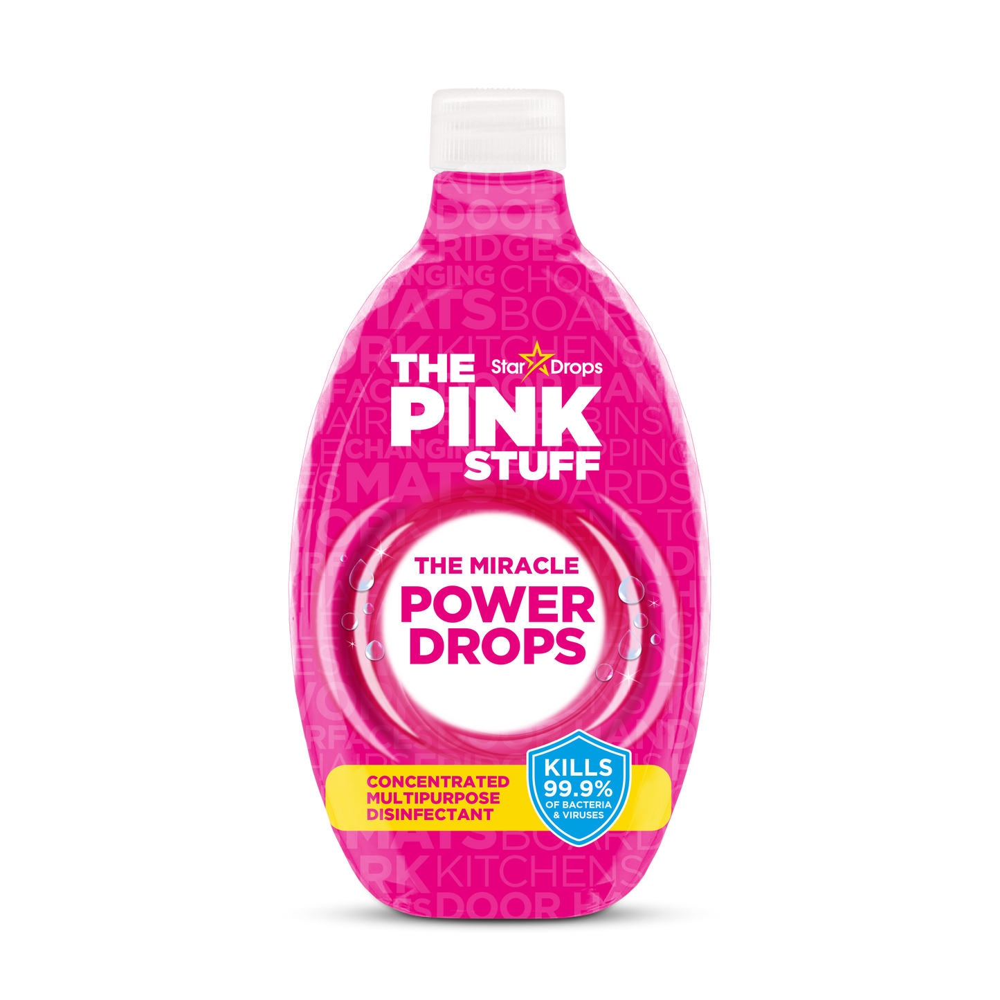 The Pink Stuff Power Drops Désinfectant concentré. Diluez-le et vaporisez, laissez tremper, essuyez, passez la serpillière ou utilisez pour les caniveaux et trous d'évacuation propres. Idéal pour nettoyer et désinfecter les surfaces lavables et scellées.