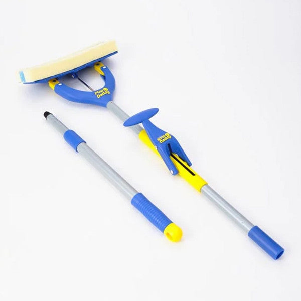 Wat de Mop Daddy extra handig maakt, is de telescopische steel. Met één simpele draai verlengt u de stang tot ca. 134 cm – ideaal voor zowel hoge als lage oppervlakken. De mopkop kantelt soepel naar een hoek van 45 graden voor comfortabel, ergonomisch gebruik, en klikt vast op 90 graden om ook onder meubels en op moeilijk bereikbare plekken te komen.